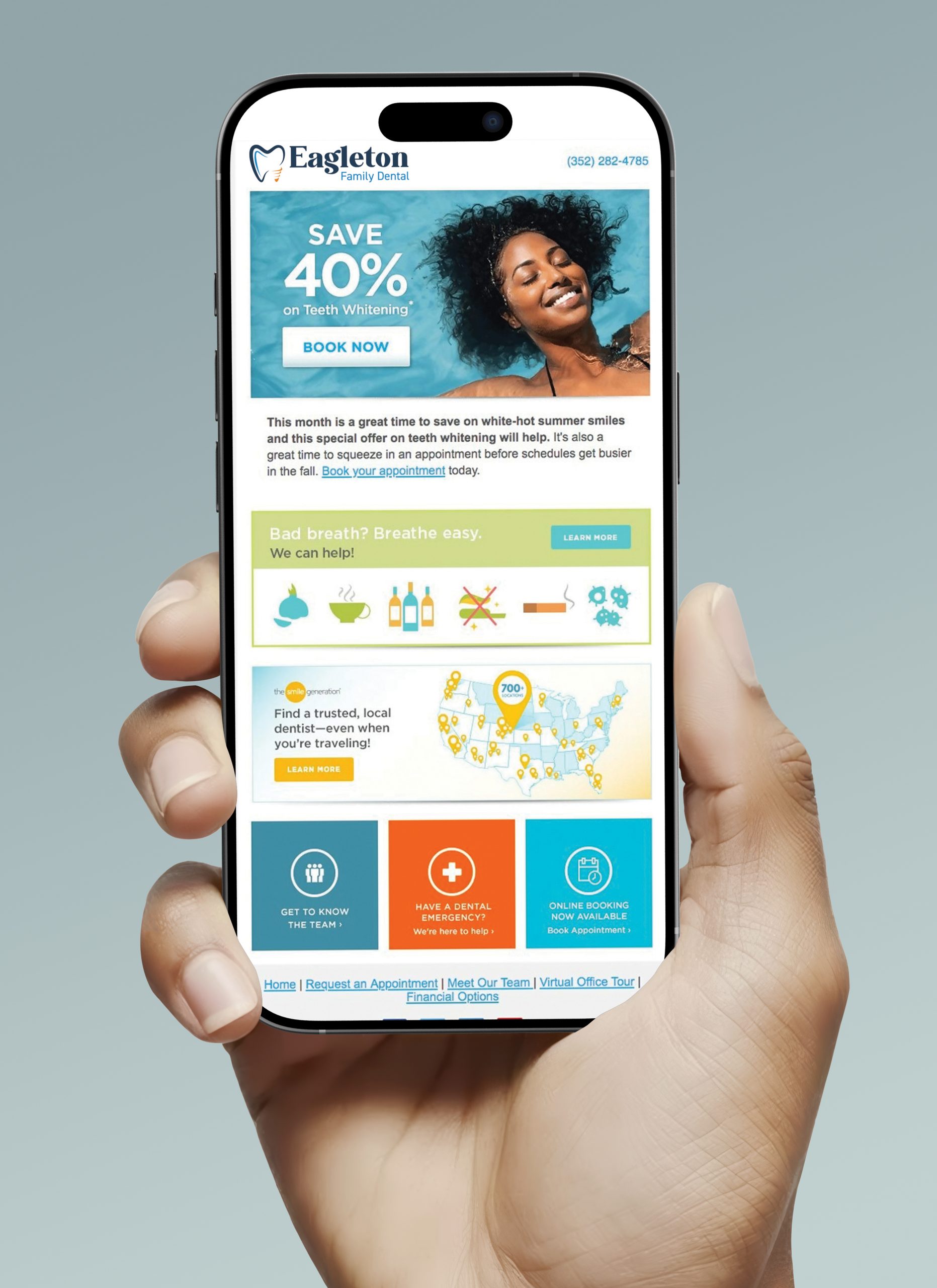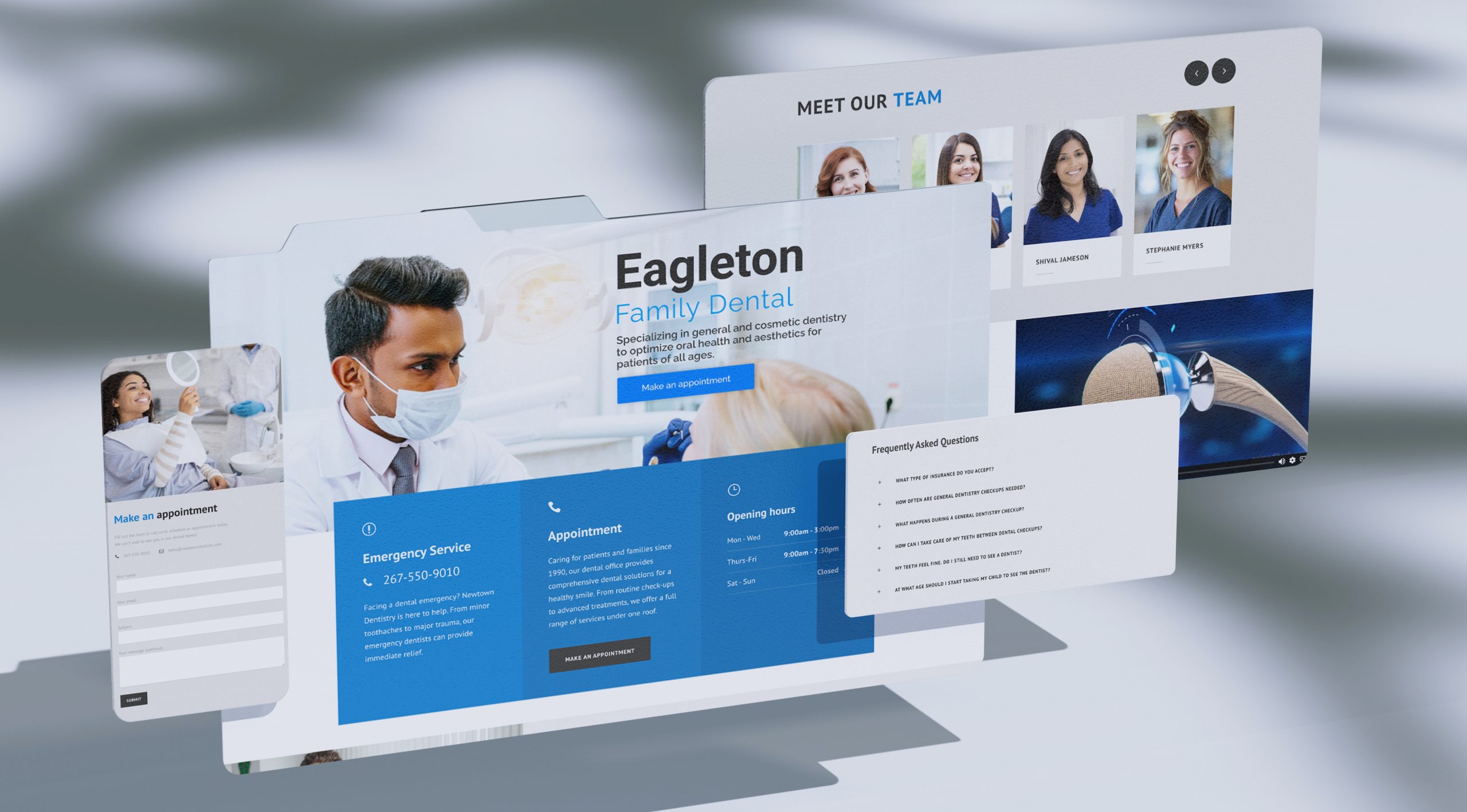 Newtown Designs launched a new website for Eagleton Family Dental, creating a professional and welcoming online experience that reflects the practice’s commitment to patients of all ages. The site focuses on building immediate trust through high-quality imagery and detailed team bios, while ensuring a seamless, mobile-friendly experience with prominent one-click appointment scheduling.
